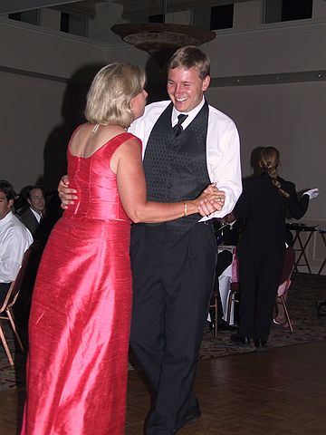 Mother and son dance.