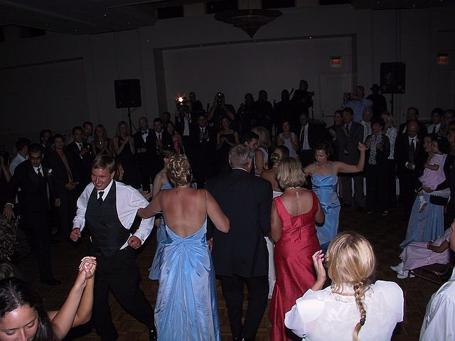 Family and friends do the hora.