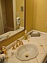 furniture, pretty tiles and brass fixtures in the bathroom, a
